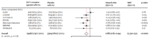 Aunque la p de interacción no fue significativa, pudo observarse una posible heterogeneidad en el impacto de los arGLP-1 derivados del exendin-4 comparados con GLP-1 humano (HR 0.95 para derivados de exendin vs HR 0,84 para los GLP-1 humanos, p de interacción: 0,06).